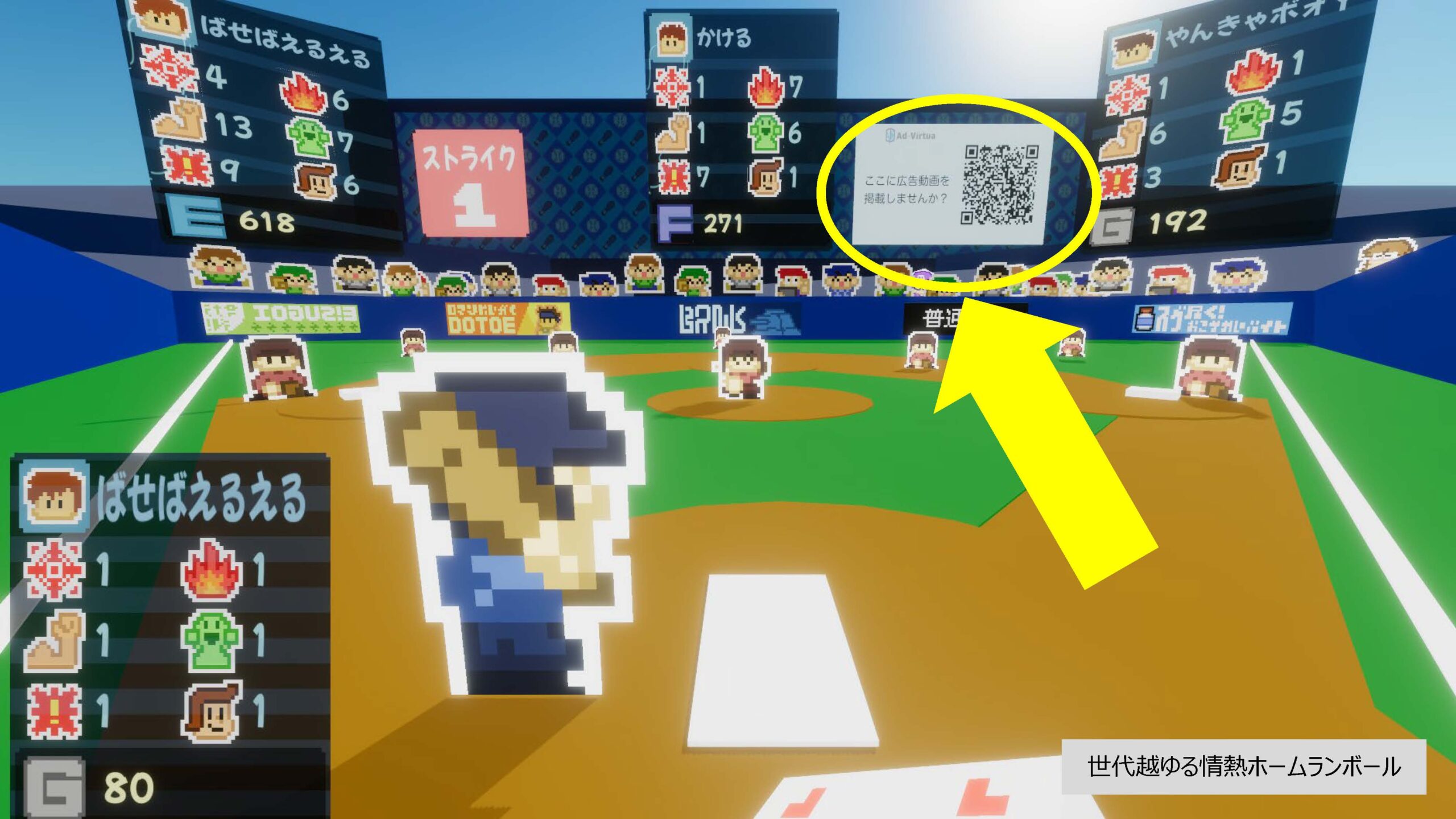 上図はパソコンで遊べる野球ゲームのスクリーンショットです。野球場のバックスクリーンのところに本物の広告が流れています。